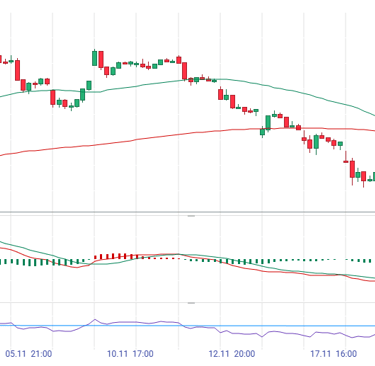 Parámetros: Por defecto, (12, 26, 9). Muestra la relación entre dos medias móviles exponenciales.